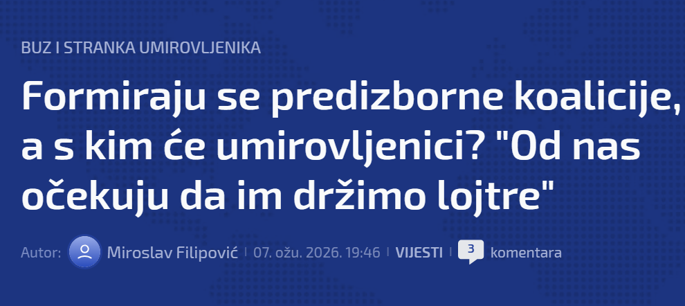 N1 je u temi o političkim suradnjama citirao predsjednika SU Lazara Grujića: "Imamo kadrove, imamo jasan program i spremni smo preuzeti odgovornost za rješavanje umirovljeničkih pitanja. A potrudit ćemo se da to i ostvarimo. Spremni smo koalirati s drugima samo na temelju naših programskih načela.